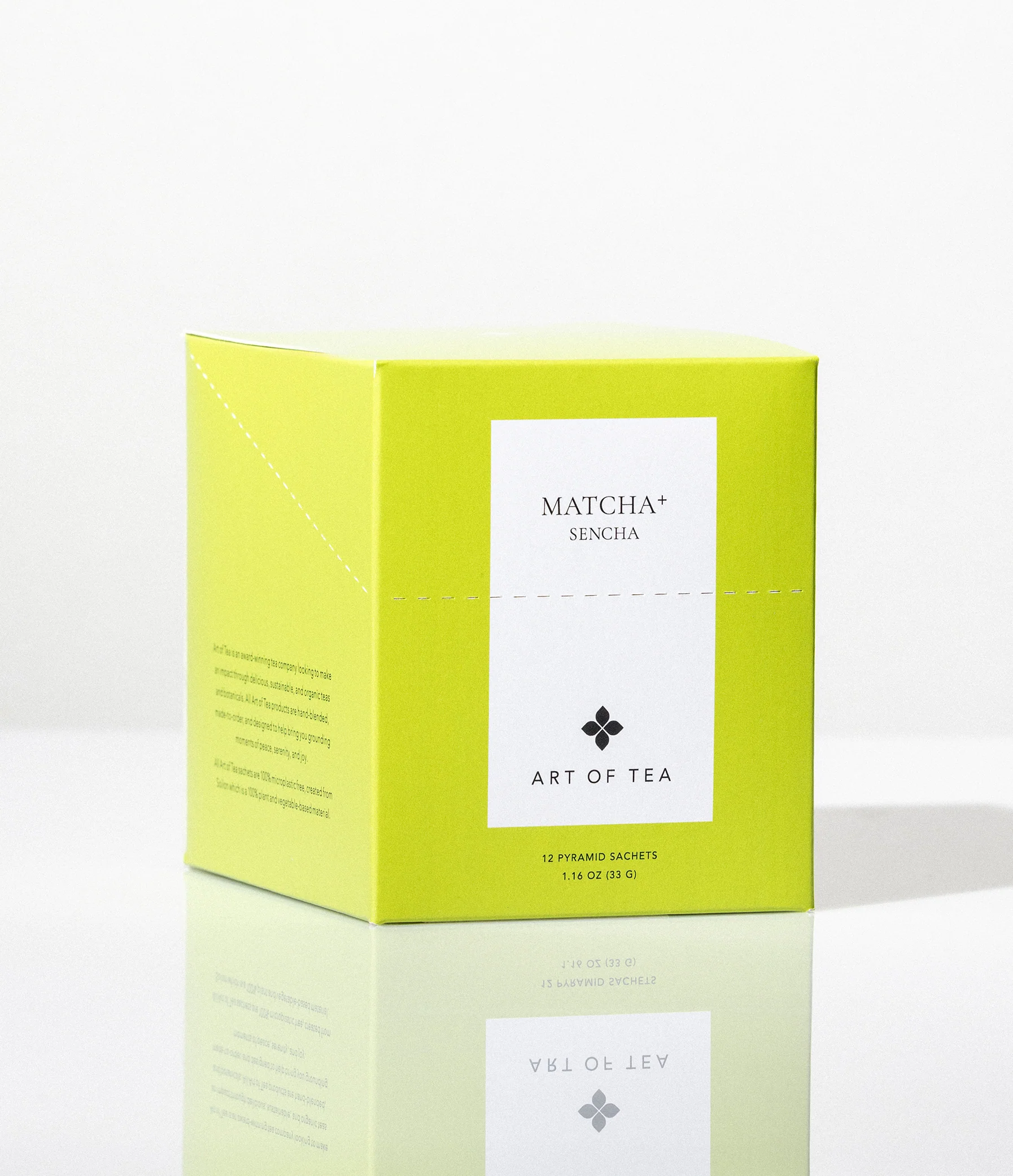 Our Matcha+ tea combines various green tea varietals to brew an ultra-vibrant cup. Organic ceremonial grade matcha is delicately hand blended with organic high-grade Sencha green tea leaves to create this energizing blend. Enjoy Matcha+ on the go with our teabag sachet.
